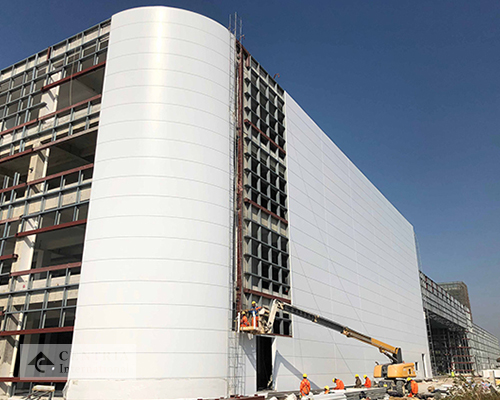 3. 平整的外墙面:英联团队寻求的是一种非常时尚的外墙面,他们很满意CENTRIA International(盛亚)在其他项目中应用的高平整度的面板。
