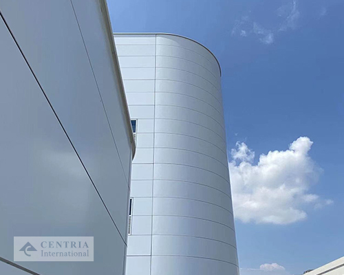 当广东英联包装股份有限公司决定在汕头建造一座现代化的新工厂时,他们产生了一个奇妙的灵感——使用他们自己产品的形状作为工厂外形。作为英联的子公司,英联金属科技公司为快速消费品生产包装,并专门生产如碳酸饮料罐的金属、易拉罐产品。因此,当他们与其设计团队就外墙的概念进行头脑风暴时,他们想到了高大、光滑的面板,以及有创意的圆角,类似于饮料罐的曲线,然后就此开始寻找能够契合这一想法的供应商。